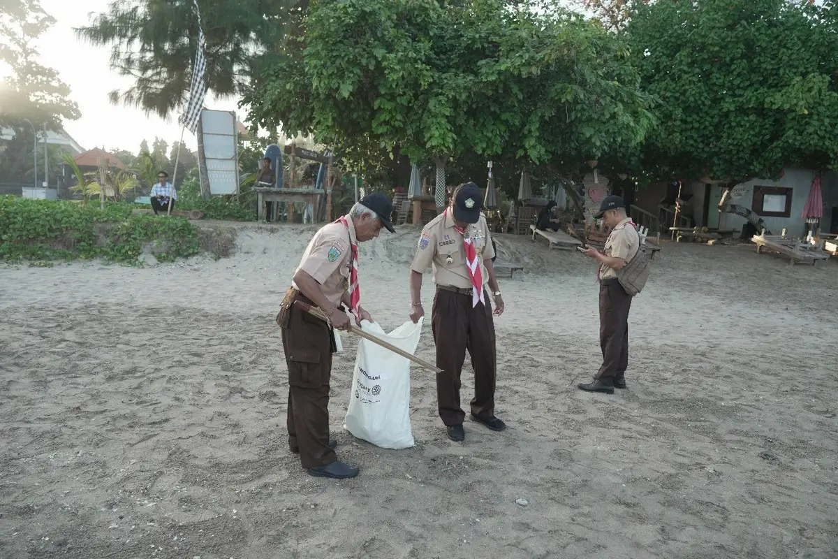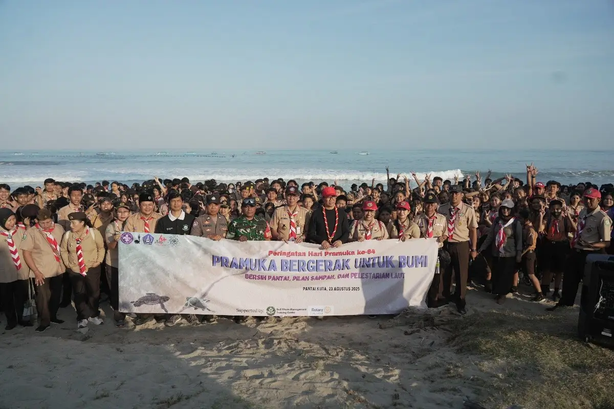 1000 orang Pramuka siaga, penggalang dan penegak serta jajaran pembina, andalan ranting, andalan cabang dan andalan daerah berkumpul di jaba Pura Segara Pantai Kuta, untuk melaksanakan kegiatan bersih pantai dan pelestarian salah satu biota laut dalam bentuk melepasliarkan 125 ekor tukik. Kegiatan ini merupakan salah satu rangkaian Hari Pramuka ke-64 tingkat daerah Bali yang dipusatkan di Kwarcab Badung yang akan dilaksanakan pada 30 Agustus 2025. Dalam kegiatan ini Rotary Bali Waste Management Training Centre berkontribusi menyediakan kantong sampah untuk clean up. Kantong sampah yang disediakan adalah kantong sampah re-use, meminimalisir penggunaan karung baru agar tidak menambah sampah.