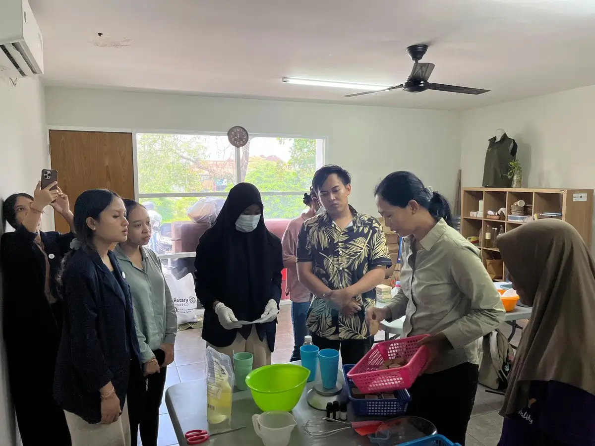 Rangkaian kegiatan teman-teman mahasiswa KKN UNUD di BWMTC dalam kaitannya dengan tema lingkungan dan pengelolaan sampah antara lain membuat sabun natural eco enzyme, membuat produk upcycle dari kain perca, dan mengenal budidaya maggot.