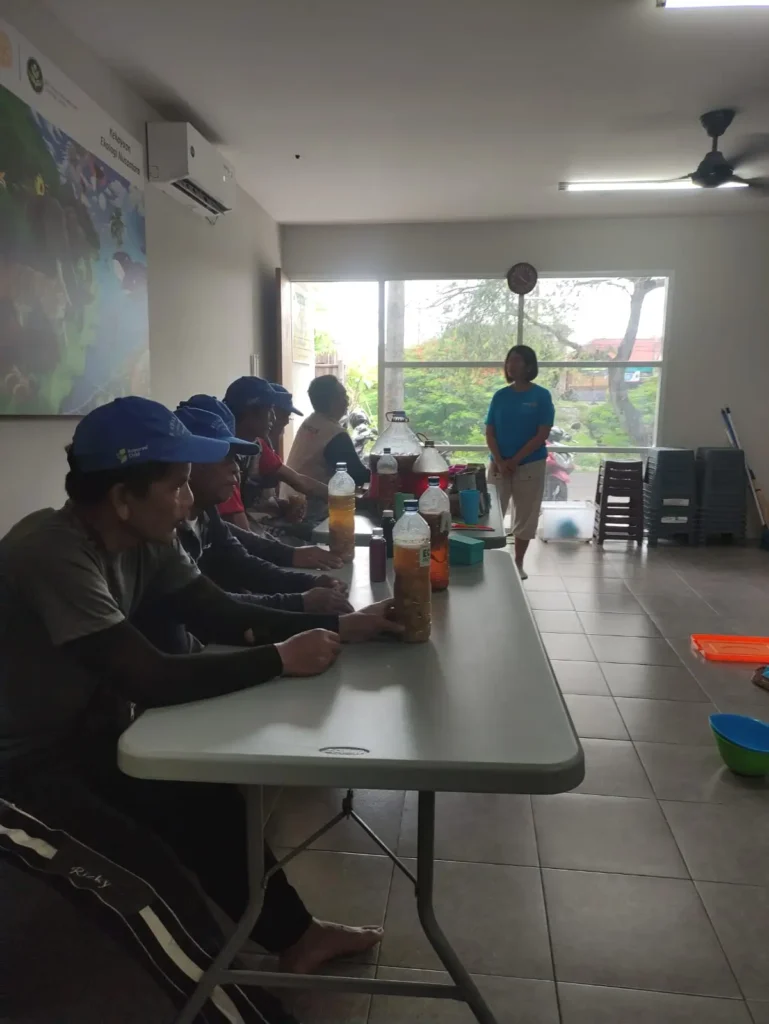Ibu Ana Rohana (BWMTC) dan Ibu Honey Kurnia (Rotary Denpasar) memberikan sosialisasi terkait manfaat eco enzym dalam kehidupan sehari-hari. Kegiatan ini diikuti oleh siswa SMA Aliyah yang sedang mengikuti program magang lingkungan serta tim Katak Loncat, yang merupakan komunitas pemerhati sungai di Pemogan.