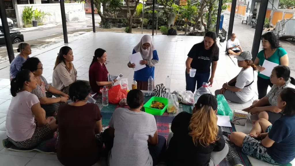 Pelatihan membuat ecoenzym bersama ibu-ibu PKK Perumahan Taman Wira Umadui, Denpasar.